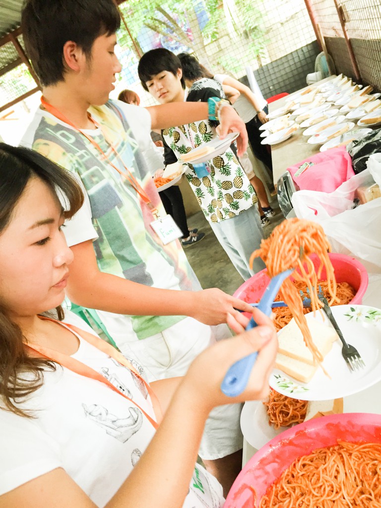 箸を使う練習として一緒にチーム対抗レースをしたり
